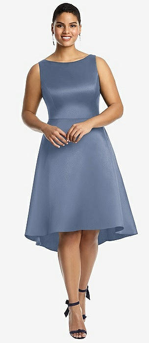 Bateau Neck Satin High Low Cocktail Dress in larkspur blue