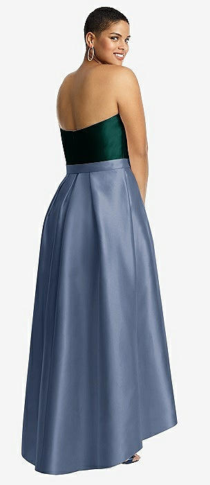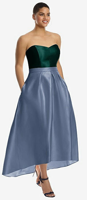 Strapless Satin High Low Dress with Pockets in larkspur blue