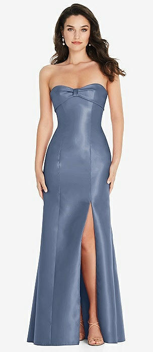 Bow Cuff Strapless Princess Waist Trumpet Gown in larkspur blue