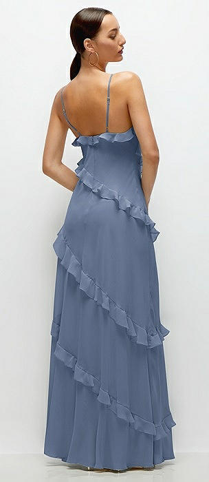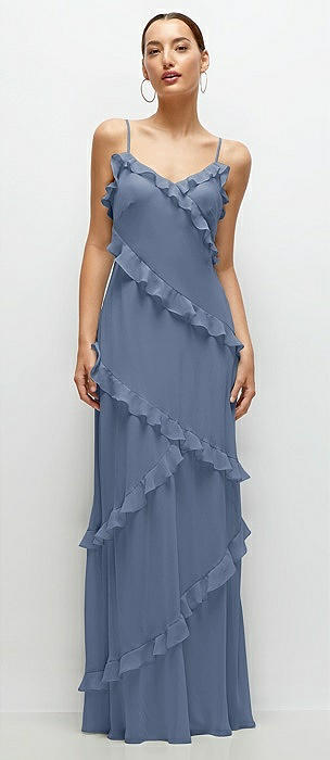 Asymmetrical Ruffle Chiffon Bias Slip Maxi Dress