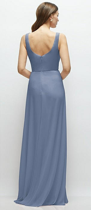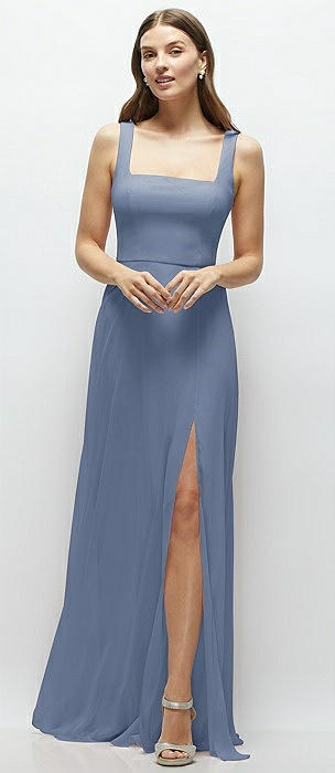 Square Neck Chiffon Maxi Dress with Circle Skirt in larkspur blue