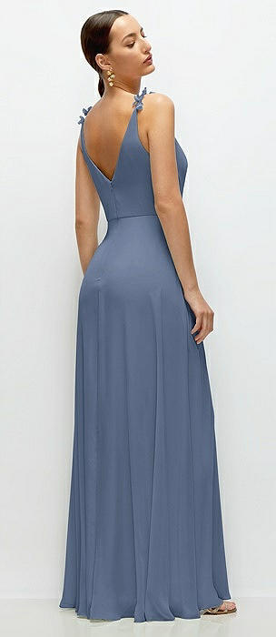 Cowl Neck Chiffon Maxi Dress with Hand-Worked Petal Straps in larkspur blue