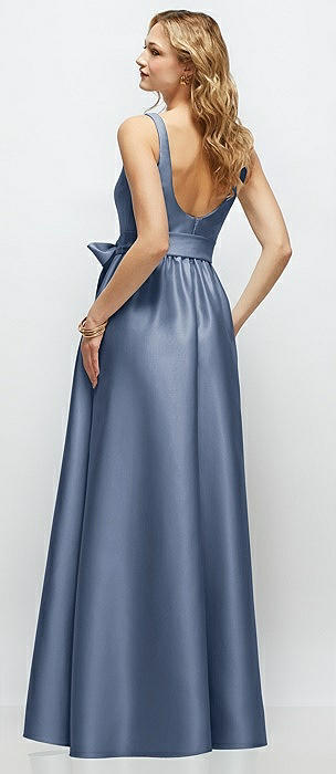 Square-Neck Satin Maxi Dress with Full Skirt in larkspur blue