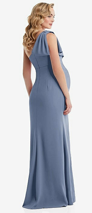 One-Shoulder Ruffle Sleeve Maternity Trumpet Gown in larkspur blue