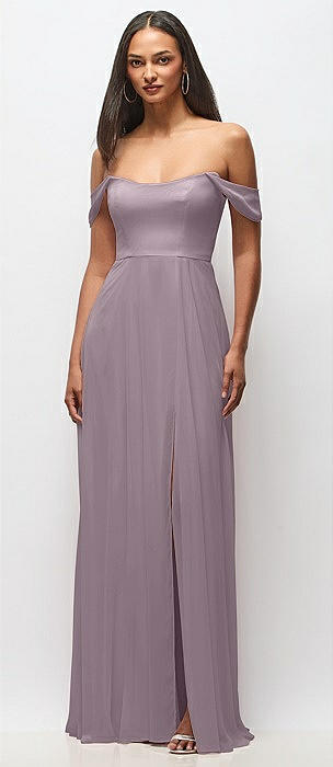 Off-the-Shoulder Draped Neckline Maxi Dress in lilac dusk