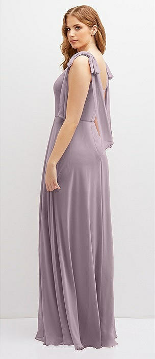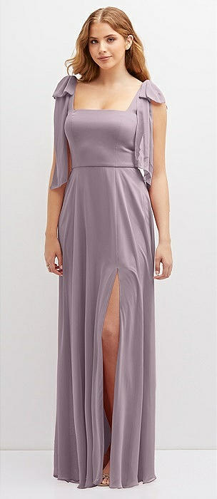 Bow Shoulder Square Neck Chiffon Maxi Dress in lilac dusk