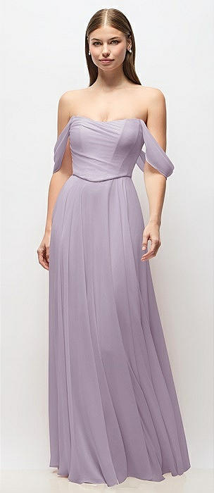 Off-the-Shoulder Basque Corset Chiffon Maxi Dress in lilac haze