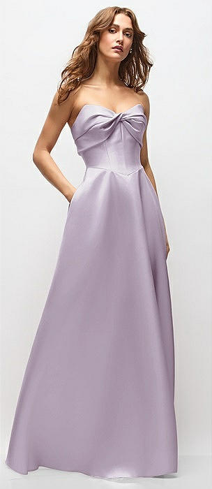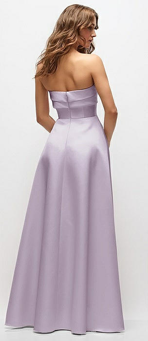 Strapless Draped Bodice Stretch Satin Column Maxi Dress in lilac haze
