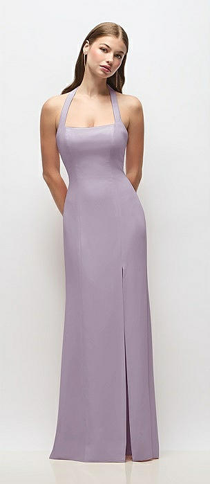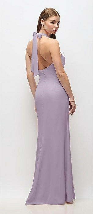 Tie Halter Open Back Trumpet Gown in lilac haze