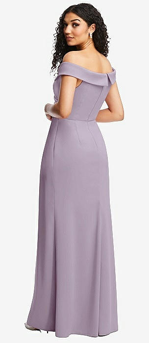 Off-the-Shoulder Criss Cross Back Trumpet Gown in lilac haze