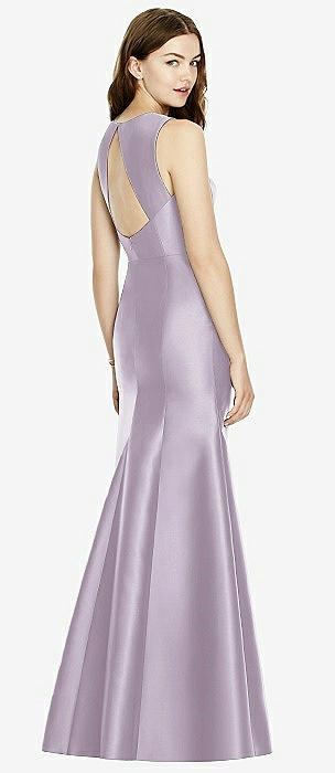 Sleeveless Satin Trumpet Gown with Bow at Open-Back in lilac haze