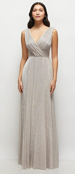 Dramatic Ruffle Edge Convertible Strap Metallic Pleated Maxi Dress