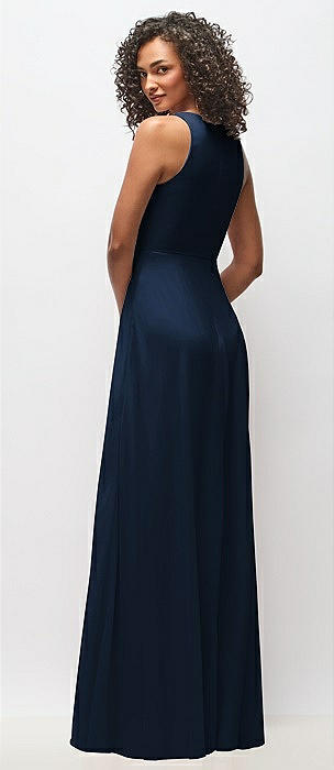 High-Neck Halter Open-Back Satin Trumpet Dress in midnight navy