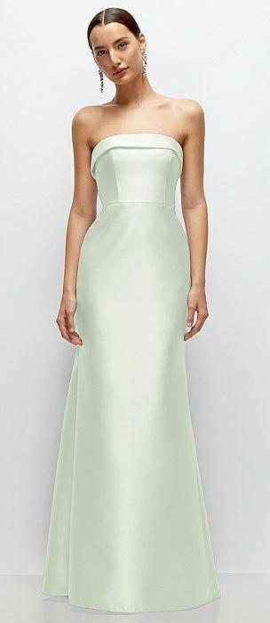 Strapless Cuff Neckline Satin Trumpet Gown in mint green