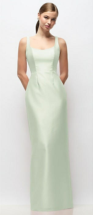 Scoop Neck Drop Basque Skirt Satin Maxi Dress with Pockets in mint green