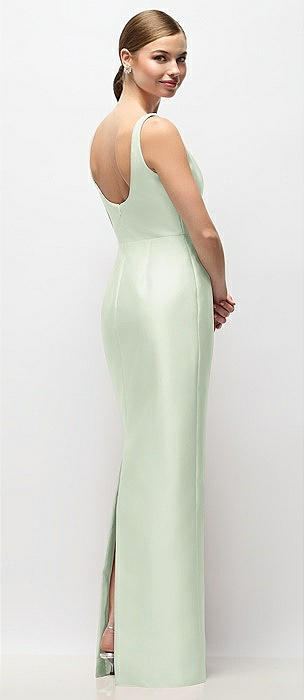 Scoop Neck Satin Column Maxi Dress with Bow at Empire Waist in mint green