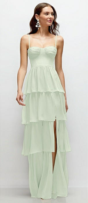 Bustier-Style Chiffon Tiered Ruffle Maxi Dress with Adjustable Straps in mint green