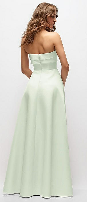 Strapless Pleated U-Wire Satin Maxi Dress with Semi Circle Skirt in mint green