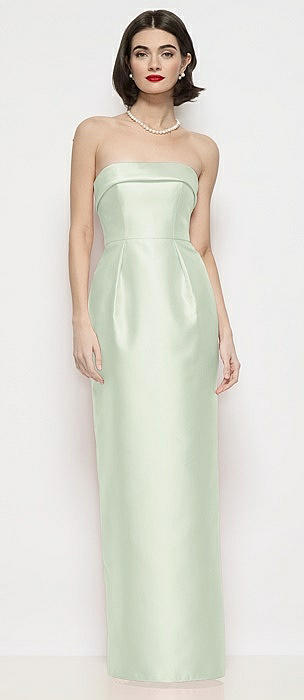 Strapless Pleated Empire Satin Column Maxi Dress in mint green