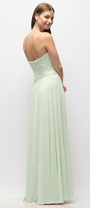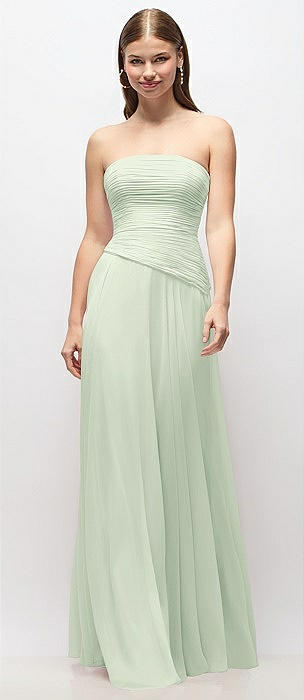 Strapless Chiffon Maxi Dress with Asymmetrical Ruched Drop Waist in mint green