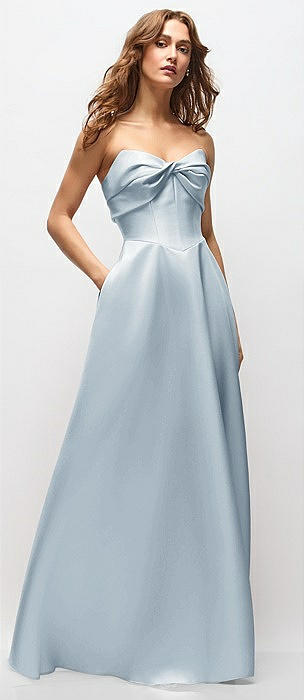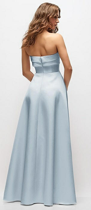 Strapless Pleated U-Wire Satin Maxi Dress with Semi Circle Skirt in mist