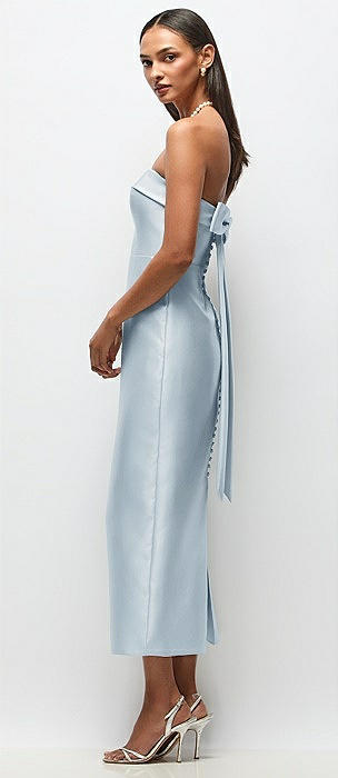 Strapless Cuff Satin Midi Dress with Column Skirt & Back Bow in mist