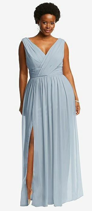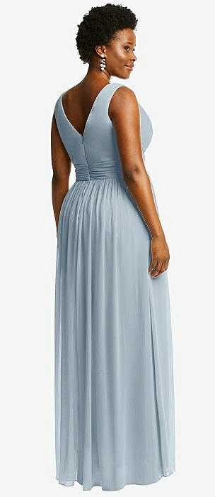 Sleeveless Draped Chiffon Maxi Dress with Front Slit in mist