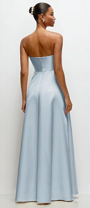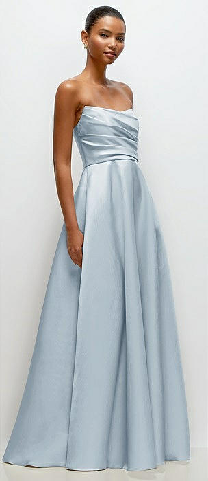 Strapless Draped Cat-Eye Satin Maxi Dress with Full Skirt in mist