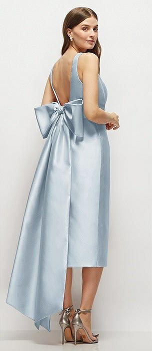 Strapless Cuff Satin Midi Dress with Column Skirt & Back Bow in mist