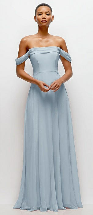 Off-the-Shoulder Draped Chiffon Maxi Dress in mist