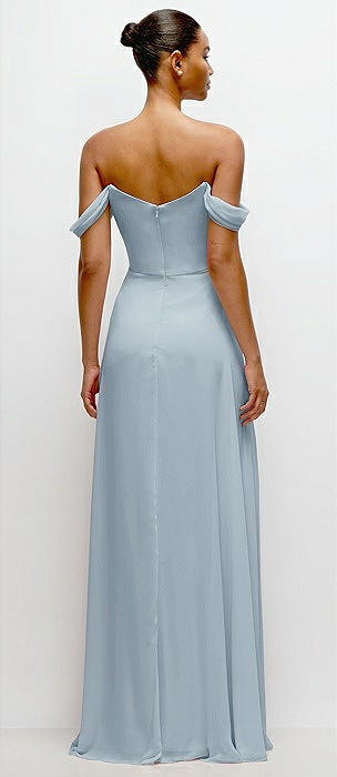 Bow-Shoulder V-Back Chiffon Gown with Front Slit in mist