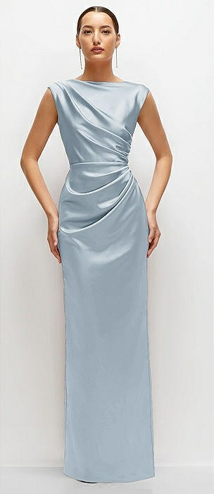 Draped Stretch Satin Maxi Dress with Built-in Capelet in mist