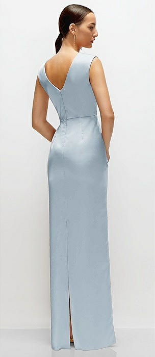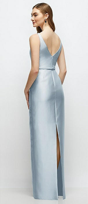 Sleeveless Satin Trumpet Gown with Bow at Open-Back in mist