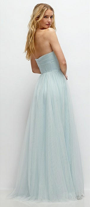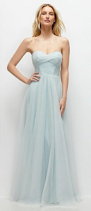 Strapless Twist Cup Tulle Corset Dress with Full Maxi Skirt in mist