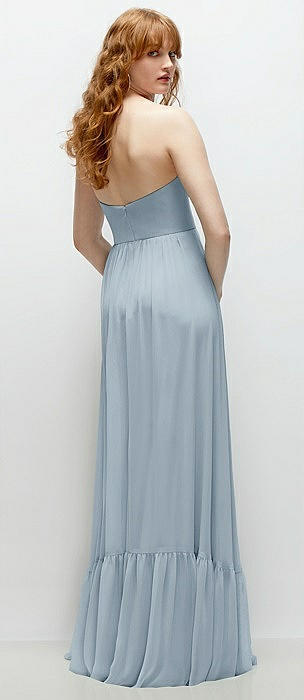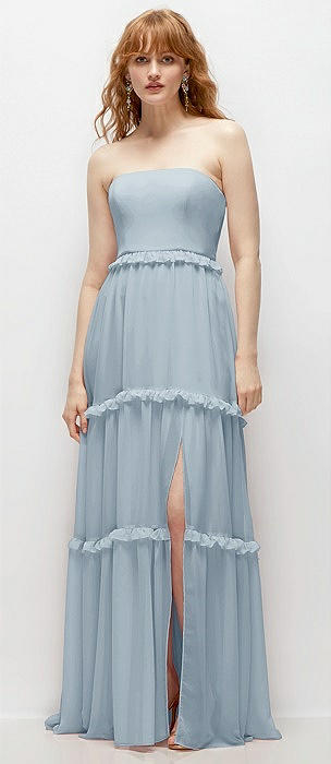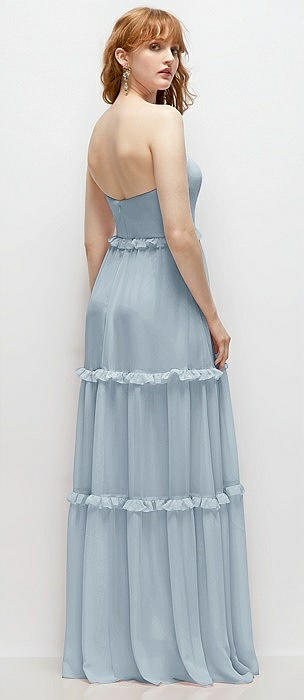 Strapless Chiffon Maxi Dress with Tiered Micro Ruffle Full Skirt in mist