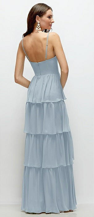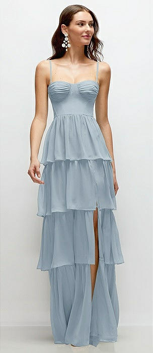 Bustier-Style Chiffon Tiered Ruffle Maxi Dress with Adjustable Straps in mist