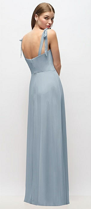 Tie-Shoulder Chiffon Maxi Dress with Front Slit in mist
