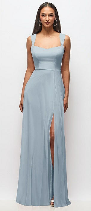 Square Neck Chiffon Maxi Dress with Circle Skirt in mist
