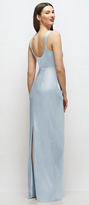 Scoop Neck Draped Column Stretch Satin Maxi Dress in mist