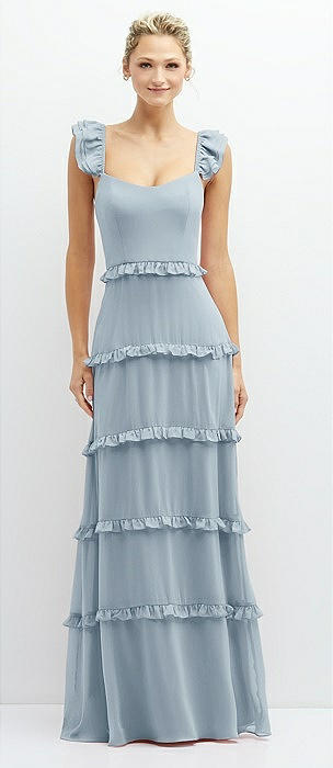 Tiered Chiffon Maxi A-line Dress with Convertible Ruffle Straps in mist