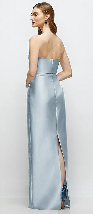 Strapless Satin Column Maxi Dress with Oversized Handcrafted Bow in mist