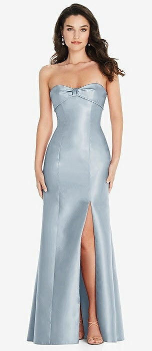 Bow Cuff Strapless Princess Waist Trumpet Gown in mist