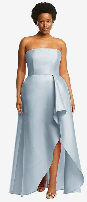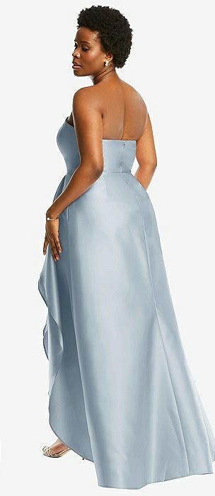 Strapless Deep Ruffle Hem Satin High Low Dress with Pockets in mist