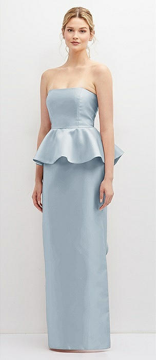 Strapless Satin Maxi Dress with Cascade Ruffle Peplum Detail in mist