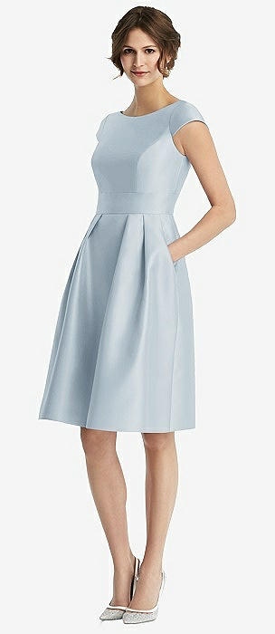 Cap Sleeve Pleated Cocktail Dress with Pockets