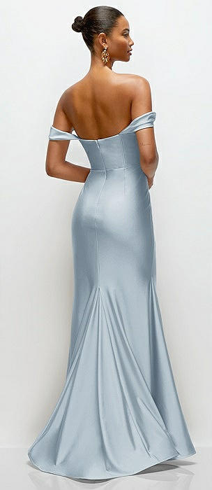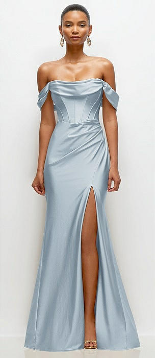 Off-the-Shoulder Corset Stretch Satin Mermaid Dress with Slight Train in mist