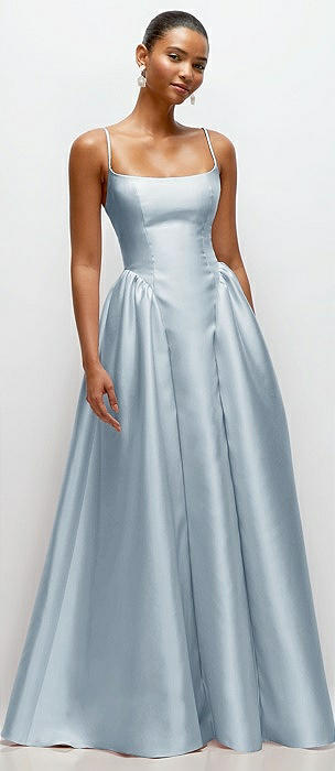 Square-Neck Satin Maxi Dress with Full Skirt in mist