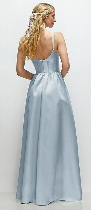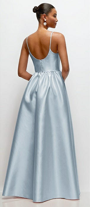 Scoop Neck Drop Basque Skirt Satin Maxi Dress with Pockets in mist