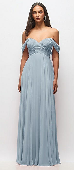 Off-the-Shoulder Draped Chiffon Maxi Dress in mist
