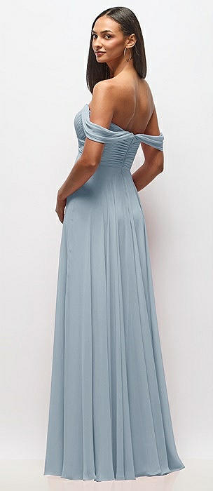 Off-the-Shoulder Basque Corset Chiffon Maxi Dress in mist